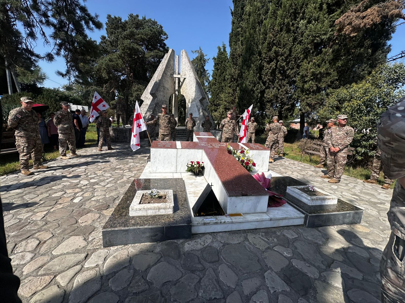 მემორიალთან იმყოფებოდნენ თავდაცვის სამინისტროს მეოცე ტერიტორიული ბრიგადის ჯარისკაცები და ანწუხელიძის თანასოფლელები.