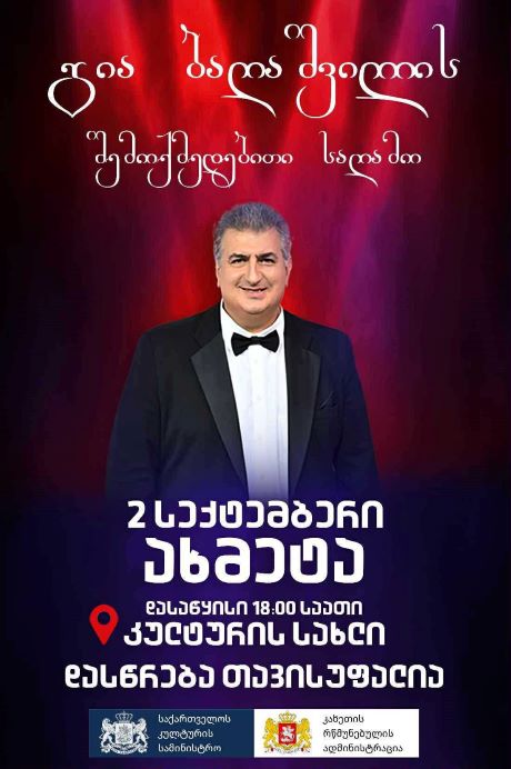 Home რეგიონი ახმეტა 2 სექტემბერს ახმეტის კულტურის სახლში გია ბაღაშვილის შემოქმედებითი საღამო გაიმართება რეგიონიახმეტა 2 სექტემბერს ახმეტის კულტურის სახლში გია ბაღაშვილის შემოქმედებითი საღამო გაიმართება 01/09/2025 FacebookTwitterPinterestWhatsApp საქართველოს კულტურის სამინისტროს ორგანიზებითა და კახეთის მხარეში სახელმწიფო რწმუნებულის ადმინისტრაციის ხელშეწყობით, 2 სექტემბერს, ახმეტის კულტურის სახლში, გია ბაღაშვილის შემოქმედებითი საღამო გაიმართება. დასაწყისი: 18:00 საათი. დასწრება თავისუფალია.