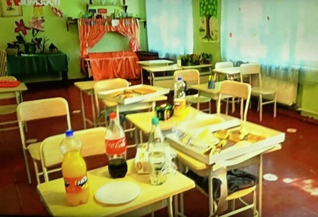 სივრცე, სადაც საკვები ინახება, საარჩევნო უბნის გვერდით მდებარე საკლასო ოთახია.