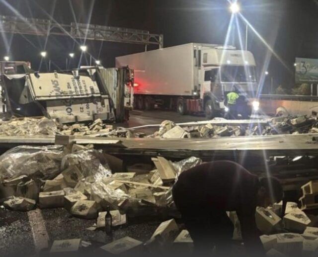 ავარიის შედეგად არავინ დაშავებულა. ტვირთი ნაწილობრივ დაზიანდა და გზაზე გაიფანტა, რამაც მოძრაობა დროებით შეაფერხა.