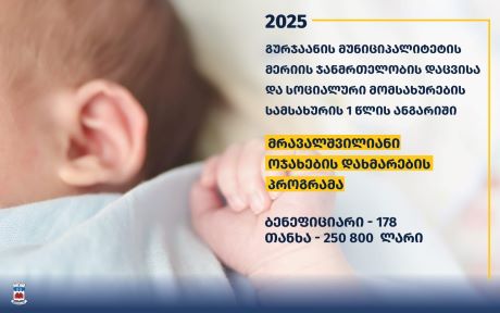პროგრამას გურჯაანის მუნიციპალიტეტის მერიის ჯანმრთელობის დაცვისა და სოციალური მომსახურების სამსახური ახორციელებს, რომლით სარგებლობა შეუძლიათ ოჯახებს, რომელთაც 4 და მეტი არასრულწლოვანი შვილი ჰყავთ და ერთ-ერთი მშობელი რეგისტრირებულია გურჯაანის მუნიციპალიტეტში. აღნიშნული პროგრამა 18 წლამდე ასაკის მეოთხე და ყოველ შემდეგ შვილზე ყოველთვიურ ფულად დახმარებას გულისხმობს.