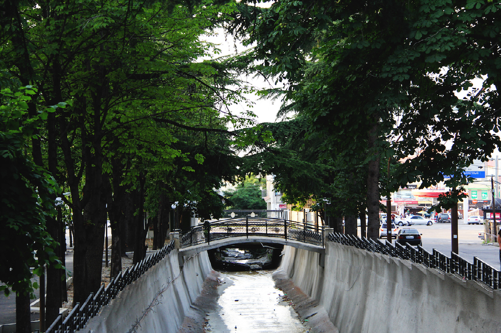ქუჩას შუაში არხი ჩამოუდის. არხზე გადებული პატარ-პატარა ხიდები, ორივე მხარეს ჩამწკრივებული ხეები და ჩიტების ჭიკჭიკი ყველა მხრიდან, ისეთი სიმყუდროვისა და სიმშვიდის განცდას ქმნის, რომ არც ქუჩის ორივე მხარეს ჩავლილი მანქანების ხმა აღარ ჩაგესმის და ვერც საბჭოთა ქალაქური პროექტის უსახურ აივნებიან კორპუსებს ხედავ.