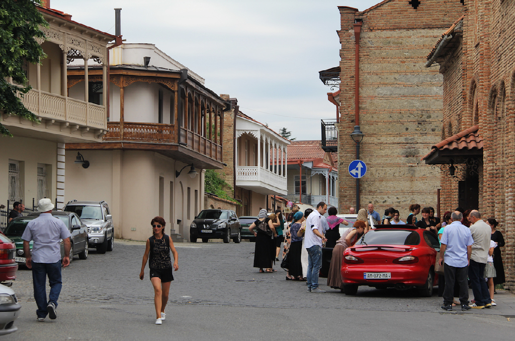 ქუჩის ბოლო გზაჯვარედინზე გადის. მარჯვნივ გზა ტაძართან მიდის და ულამაზესი ქვაფენილიანი ქუჩისკენ, აივნიანი სახლები რომ გადმოჰყურებს ზემოდან. აქ ყველა ეზო მოვლილია და გაყვავილებული. ხალხმრავლობაა. ზოგი წირვიდან გამოდის, ზოგიც ოჯახთან ერთადაა გამოსული და ისვენებს.